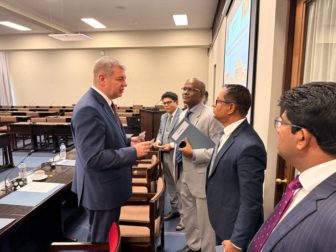 09.10.2025 г.9 октября 2025 г. по приглашению Спикера Парламента Шри-Ланки Д.Викрамаратне Посол Республики Беларусь в Индии и Шри-Ланке (по совместительству) М.Касько принял участие в заседании Парламента, на котором был рассмотрен вопрос создания Группы дружбы с Республикой Беларусь.